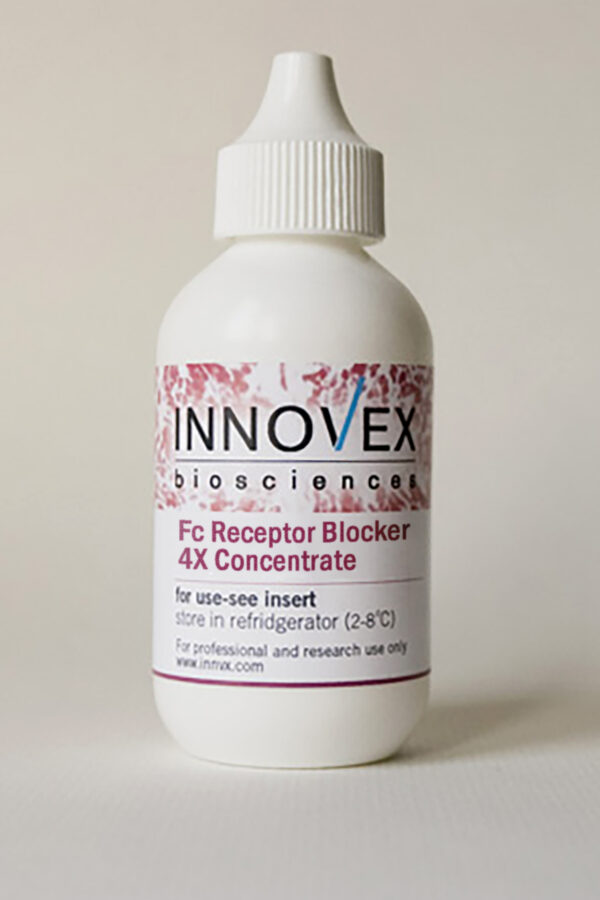Innovex Fc Receptors Block is a peptide based technology designed to block Fc Receptors present on all leukocytes (white blood cells), lymphomas, leukemias and melanomas. Fc receptors are also expressed on a majority of tumors; Blocking the Fc receptors is essential for accurate typing of lymphoid tumors.